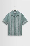 wax london Didcot - Sea Green And Ecru Embroidered Short-Sleeve Shirt